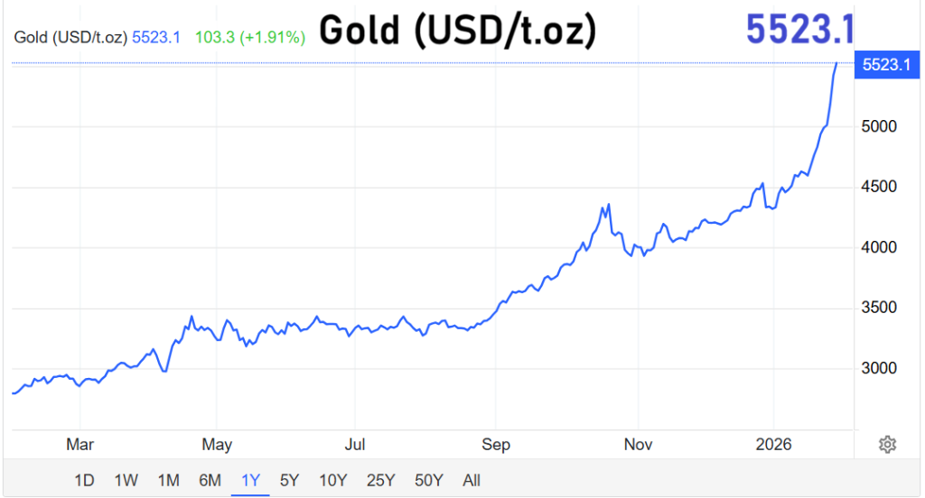 Parallel zur Silberhausse verändert sich auch die Wahrnehmung von Gold. Nach dem Durchbruch über 5.500 US-Dollar sehen Marktbeobachter den Preis nicht mehr als klassische Rohstoffnotierung, sondern als Ausdruck eines tieferliegenden Vertrauensverlusts.