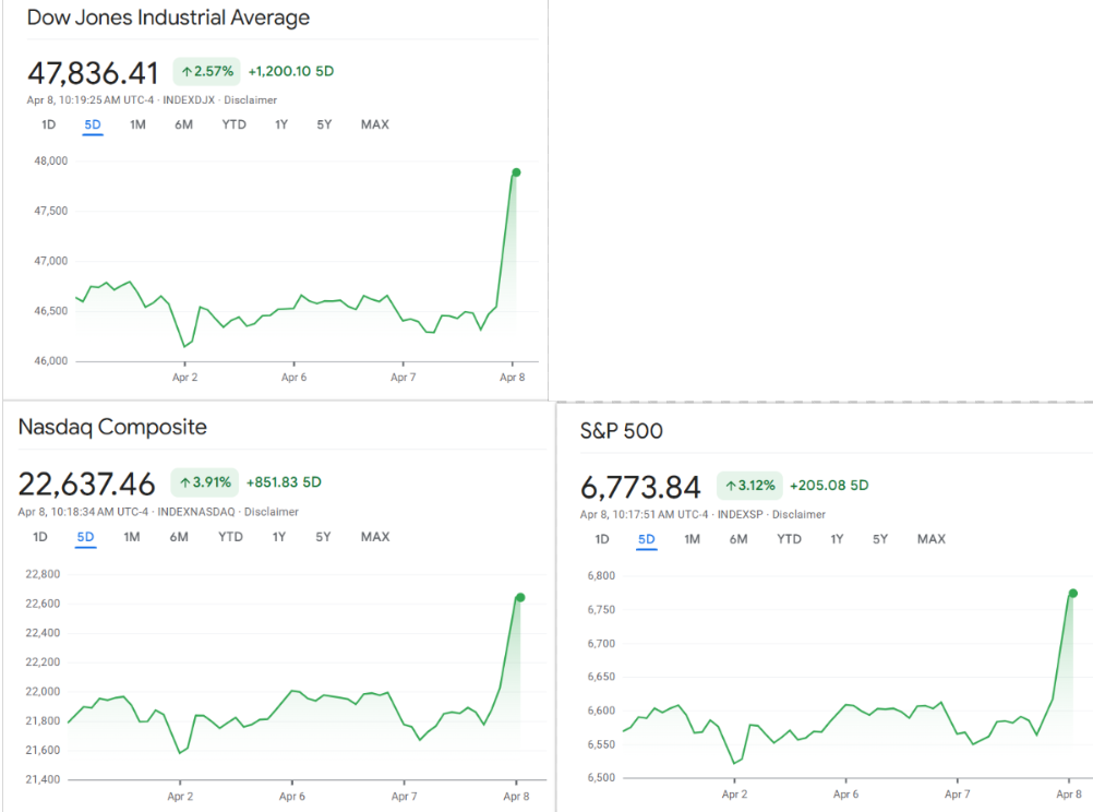 Die Einigung auf eine zweiwöchige Waffenruhe im Krieg zwischen den USA und dem Iran hat an den amerikanischen Finanzmärkten eine massive Gegenbewegung ausgelöst. Nach der vorherigen Zuspitzung des Konflikts, steigenden Ölpreisen und wachsender Sorge vor einem größeren globalen Schock setzte an der Wall Street eine spürbare Erleichterung ein. Anleger, die sich zuvor aus Risikoanlagen zurückgezogen hatten, kehrten in großem Stil in den Markt zurück.