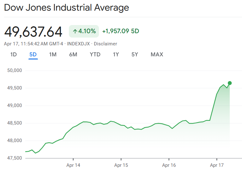 An der Wall Street ist zum Wochenschluss regelrechte Erleichterung zu spüren. Schon zur Eröffnung bricht an der Börse in New York lauter Jubel aus. Auslöser ist vor allem die Nachricht, dass der Iran die Straße von Hormus wieder für die kommerzielle Schifffahrt geöffnet hat. Damit fällt ein zentraler Belastungsfaktor für die Märkte zumindest vorerst weg. Die Sorge vor neuen Engpässen beim Öltransport, die in den vergangenen Tagen wie ein Schatten über den Finanzmärkten lag, verliert schlagartig an Gewicht.