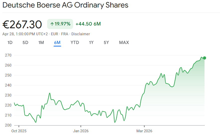 Für die Deutsche Börse ist das ein idealer Nährboden. Denn sie verdient nicht nur an klassischen Wertpapiergeschäften, sondern vor allem auch an der erhöhten Nachfrage nach Produkten, mit denen Marktteilnehmer Risiken steuern oder begrenzen wollen. Wenn Krisen die Nervosität anheizen, wächst deshalb oft genau jener Teil des Geschäfts, der besonders margenstark und dynamisch ist.