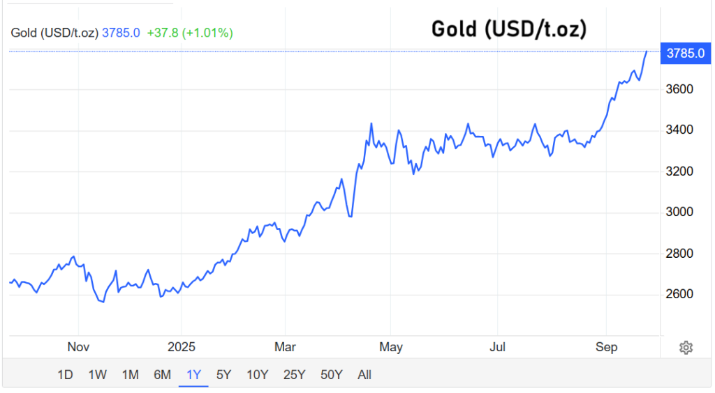 Die Federal Reserve hatte in der vergangenen Woche erstmals in diesem Jahr den Leitzins gesenkt. Darüber hinaus stellten die Währungshüter bis Jahresende zwei weitere Senkungen um jeweils 0,25 Prozentpunkte in Aussicht. Für den Markt bedeutet dies, dass Edelmetalle im Vergleich zu verzinslichen Anlagen wie Staatsanleihen attraktiver werden. Ein Analyst fasste zusammen: „In einem Umfeld fallender Zinsen steigt der Reiz von Gold und Silber erheblich.“