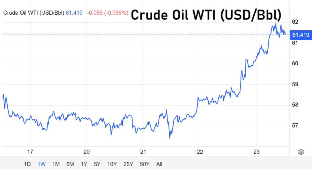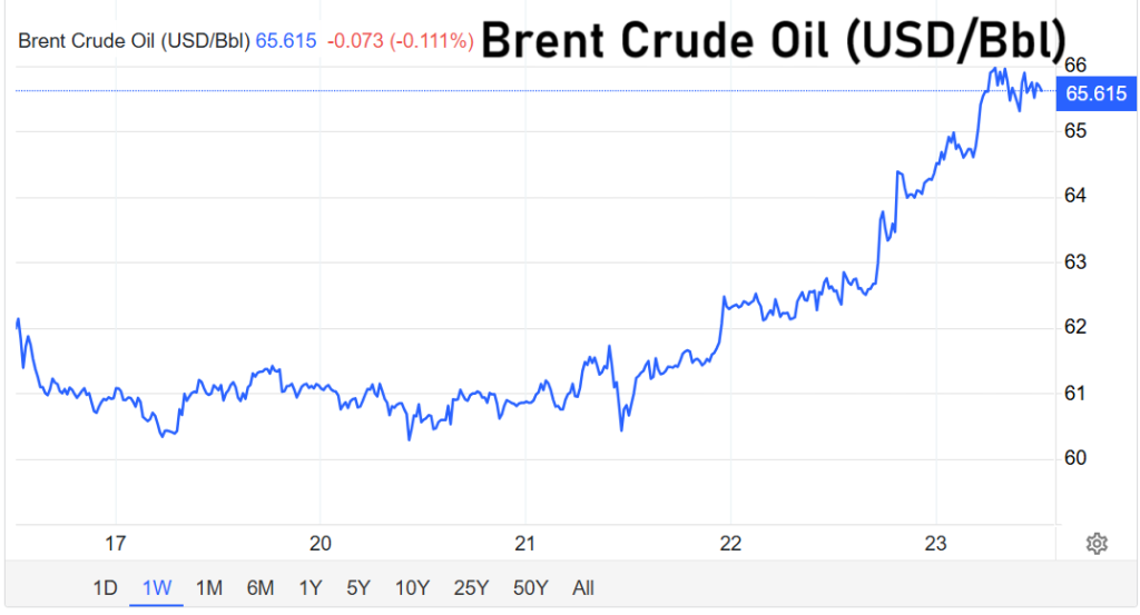 Ein Barrel der Nordseesorte Brent verteuerte sich um 5,4 Prozent auf 65,93 US-Dollar, die US-Referenzsorte WTI um 5,5 Prozent auf 61,74 Dollar. Laut Analysten handelt es sich um den größten Tagesanstieg seit Monaten. Die Aktien großer Energieunternehmen wie BP, Shell und TotalEnergies legten um bis zu 3,6 Prozent zu – ein deutliches Zeichen, dass der Markt mit einer längeren Phase hoher Preise rechnet.