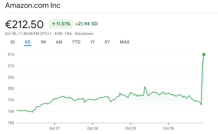 Der US-Internetriese Amazon hat mit seinem jüngsten Quartalsbericht die Erwartungen der Analysten weit übertroffen und die Börse überrascht. Für das dritte Quartal meldete der Konzern einen Gewinn von 21,12 Milliarden US-Dollar, was einem Ergebnis von 1,95 US-Dollar pro Aktie entspricht. Im Vergleichszeitraum des Vorjahres hatte das Unternehmen lediglich 15,33 Milliarden US-Dollar erzielt.