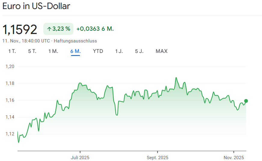 Am Devisenmarkt legte der Euro leicht zu und wurde am Abend mit 1,1596 US-Dollar gehandelt. Experten sehen darin vor allem eine technische Gegenbewegung nach den jüngsten Verlusten. Auch die Erwartungen an mögliche Zinssenkungen der Europäischen Zentralbank im kommenden Jahr stützen die Gemeinschaftswährung leicht.