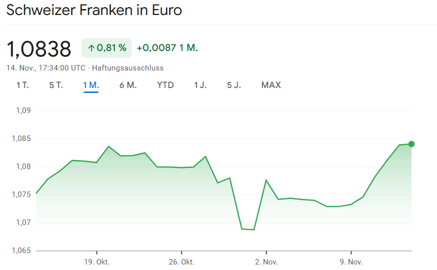 Ein Devisenhändler erklärte: „Der Franken profitiert doppelt – als sicherer Hafen in unsicheren Zeiten und als Gewinner möglicher Handelsliberalisierungen.“