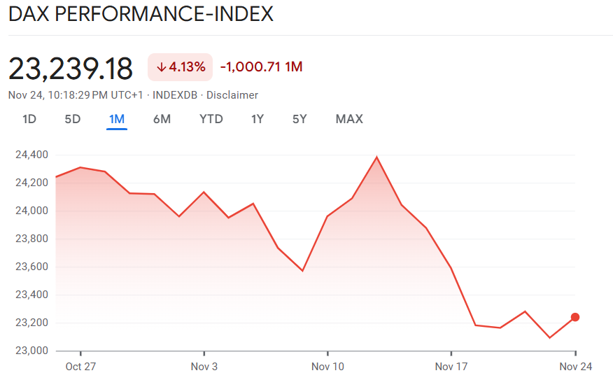 Die Signale aus der US-Notenbank Fed befeuerten die Kaufbereitschaft. Nachdem sich in den vergangenen Tagen mehrere einflussreiche Mitglieder der Federal Reserve — darunter John Williams — für eine baldige Zinssenkung ausgesprochen hatten, rechnen Marktteilnehmer zunehmend mit einer weiteren Reduzierung des Leitzinses im Dezember.