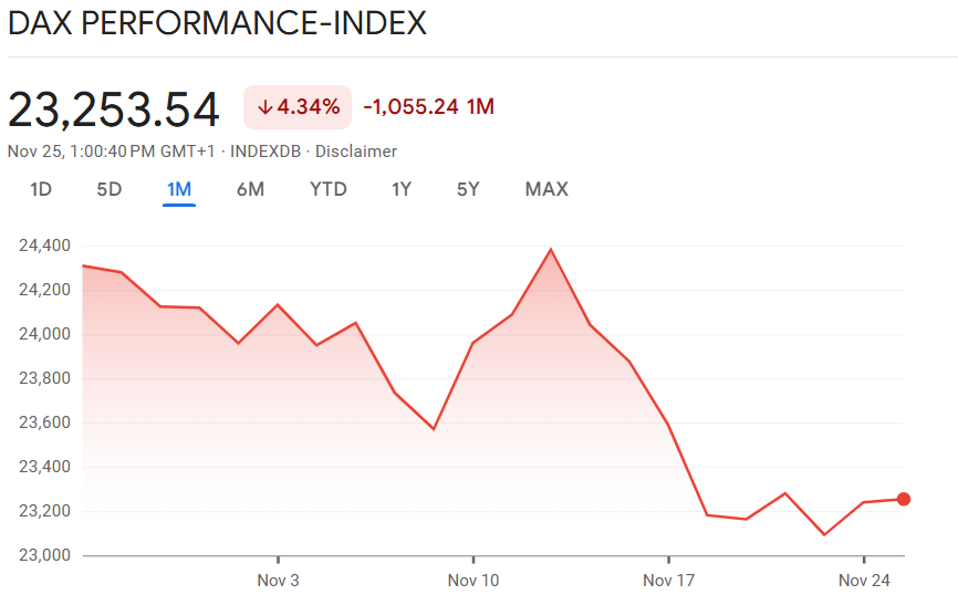 Für etwas Zuversicht sorgt die amerikanische Notenbank. Mehrere ranghohe Vertreter – darunter Mary Daly, Christopher Waller und John Williams – haben signalisiert, dass eine Zinssenkung im Dezember möglich sei. Dies stärkt die Hoffnung auf eine geldpolitische Entlastung, die zumindest die internationale Stimmung aufhellt.