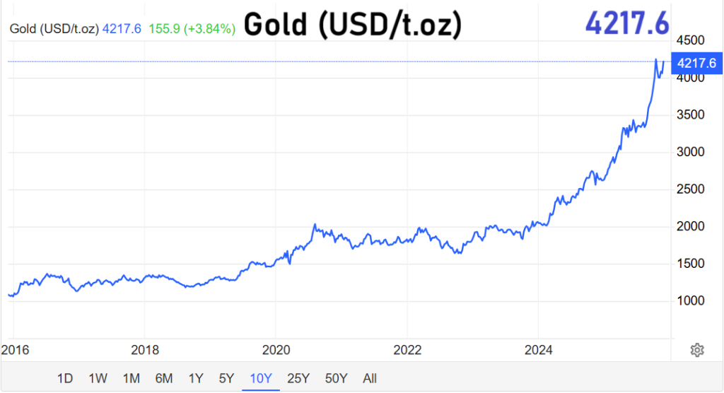 Nachdem Gold am 20. Oktober ein Rekordhoch von 4.381,52 US-Dollar markiert hatte, kam es Ende des Monats zu einer deutlichen Korrektur. Inzwischen hat das Edelmetall jedoch einen Großteil dieser Verluste wieder aufgeholt und seine Erholung fortgesetzt. Seit Ende 2024 hat sich der Goldpreis um rund 60 Prozent verteuert – ein außergewöhnlicher Betrag, der die starke Rolle des Edelmetalls im aktuellen Marktumfeld widerspiegelt. Silber konnte seine Dynamik sogar noch ausbauen und gehört aktuell zu den besten Performern im Rohstoffsektor.