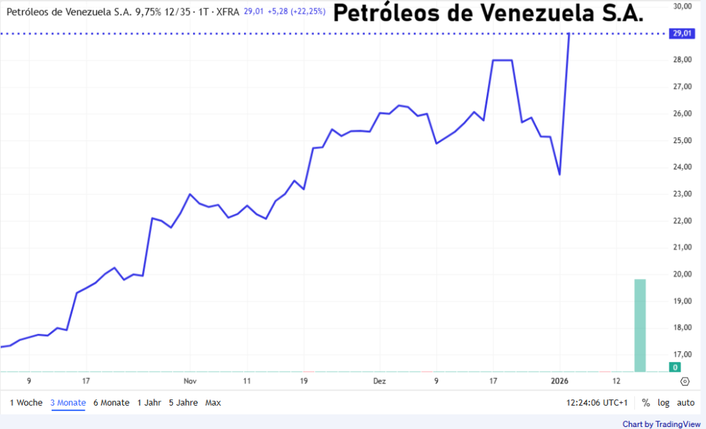 Schon im Verlauf des Jahres 2025 gehörten venezolanische Anleihen zu den auffälligsten Wertentwicklungen am globalen Markt. Innerhalb weniger Monate verdoppelten sich die Kurse nahezu, als die US-Regierung unter Präsident Donald Trump den politischen Druck auf die Führung in Caracas verschärfte. Damals begannen erste Investoren, auf einen möglichen Wendepunkt zu setzen.