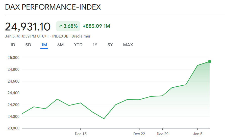 Die Entwicklung der Verbraucherpreise in Deutschland verleiht dem Dax neuen Auftrieb. Der Leitindex setzte seine Aufwärtsbewegung fort und legte im Handelsverlauf um 0,4 Prozent zu. In der Spitze erreichte er 24.969 Punkte und näherte sich damit weiter einer Marke, die an den Börsen als psychologischer Meilenstein gilt. Marktteilnehmer werten die jüngsten Inflationszahlen als Signal für ein stabileres wirtschaftliches Umfeld.